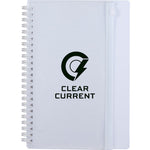 The 5.5" x 8.5" Spiral Notebook with Clear Pocket is a versatile choice for organization. With a 100% recycled polypropylene cover and a convenient clear pocket for storing documents, pens, cards, and more, this notebook keeps your essentials close at hand. Pens are not included. Inside, it includes 70 sheets of recycled lined paper, making it a sustainable option for daily notes. By choosing this notebook, you’re making a positive impact on the environment through a partnership with 1% For The Planet, as a portion of each sale supports environmental nonprofits.