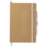 This Eco Color Bound Journal Set includes (2800-41) Eco Color Bound Journal and (6620-31) Ambassador Square Ballpoint pen. The Journal features a recycled paper hard bound cover, color accent painted edge pages, and color matching built-in elastic closure and pen loop. This specialty notebook includes a ribbon page marker, expandable accordion pocket, and 80 sheets of lined paper. Through a partnership with 1% For The Planet, one percent of sales are donated to environmental nonprofits. This item cannot be configured online. Contact us to order. Due to the nature of the material, there may be color variances.