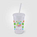Explore the world and take your cold drink with you! The Explore Double Wall Tumbler makes it easy, with double wall insulation and a snap-on lid, drinks taste just like they should. The smoothie sized straw means you can sip your smoothie, lemonade or any cold beverage. With a tapered bottom that's designed to fit in any car's cup holder, the Explore Tumbler will go wherever you go. Hand wash only. BPA-free, Lead-free, CPSIA Certified, CA Prop 65 Compliant, and FDA Approved.