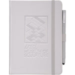 The FSC® Mix Vienna Hard Bound Journal Bundle Set includes one 5" x 7" Vienna Hard Bound Journal (2800-29) and one Ambassador Square Ballpoint Stylus (6620-33). The included hardcover bound journal features a built-in elastic closure, a color-coordinated pen loop, and a ribbon page marker. It includes 72 sheets of white lined FSC® Mix paper for taking notes, making lists, and more.