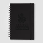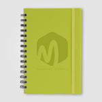 Introducing the Zelda Spiral Journal - an A5 Spiral Bound Journal featuring a hard cover crafted from recycled PU and craft paper, bound with a black metal double spiral, and includes a matching elastic band affixed to the back. It contains 96 sheets (192 pages) of 70gsm white Paper sourced via responsible forestry with collegiate lines, rounded corners.